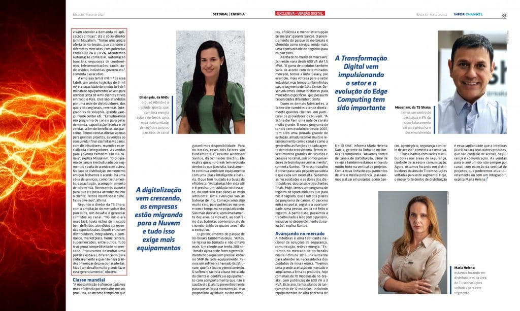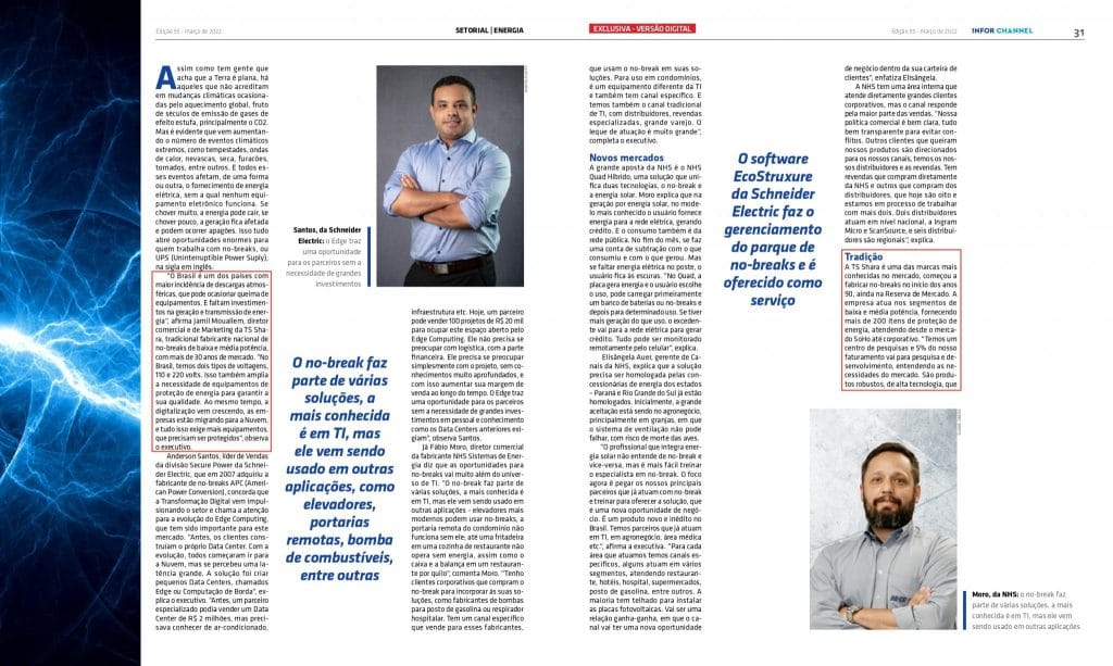 Confira a participação de Jamil Mouallem, diretor Comercial e de Marketing da TS Shara, no Especial sobre Sistemas de Energia, da revista Infor Channel.