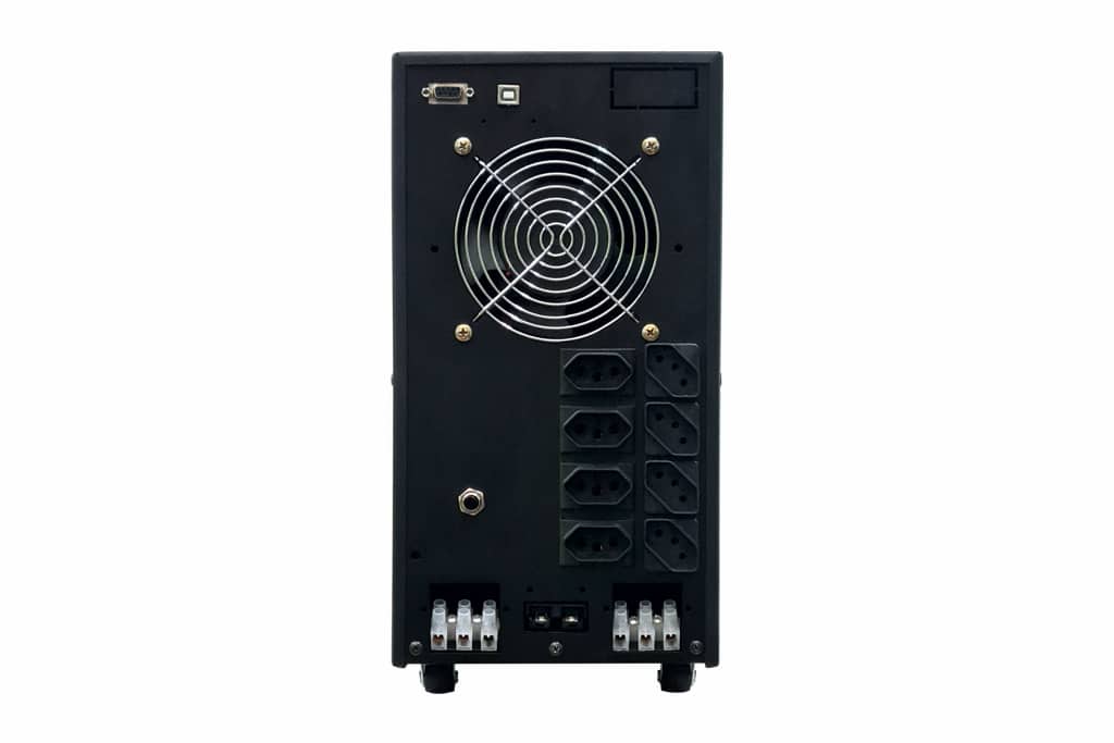 Com tecnologia UNIVERSAL, possui seleção de tensão automática de entrada, 115V ou 220V e saída bivolt selecionável, possibilitando a escolha da tensão nas tomadas de saída e bornes 115V ou 220V. Oferece comunicação inteligente USB e RS-232 e como opcional o kit SNMP – Protocolo de Gerenciamento por Rede (TCP – IP). O UPS SERVER TORRE UNIVERSAL tem conexão de entrada e saída por bornes, contando ainda com quatro tomadas de 10A e quatro tomadas de 20A, além de conexão por engate rápido para baterias externas.
